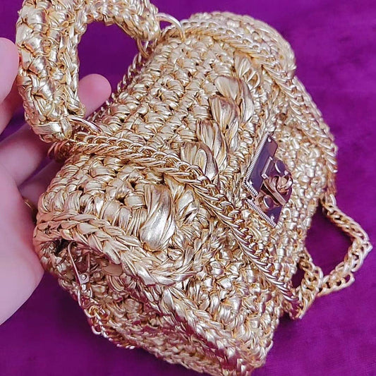 CHQEL Evening Clutch Bag for Women Handmade Crochet Metallic