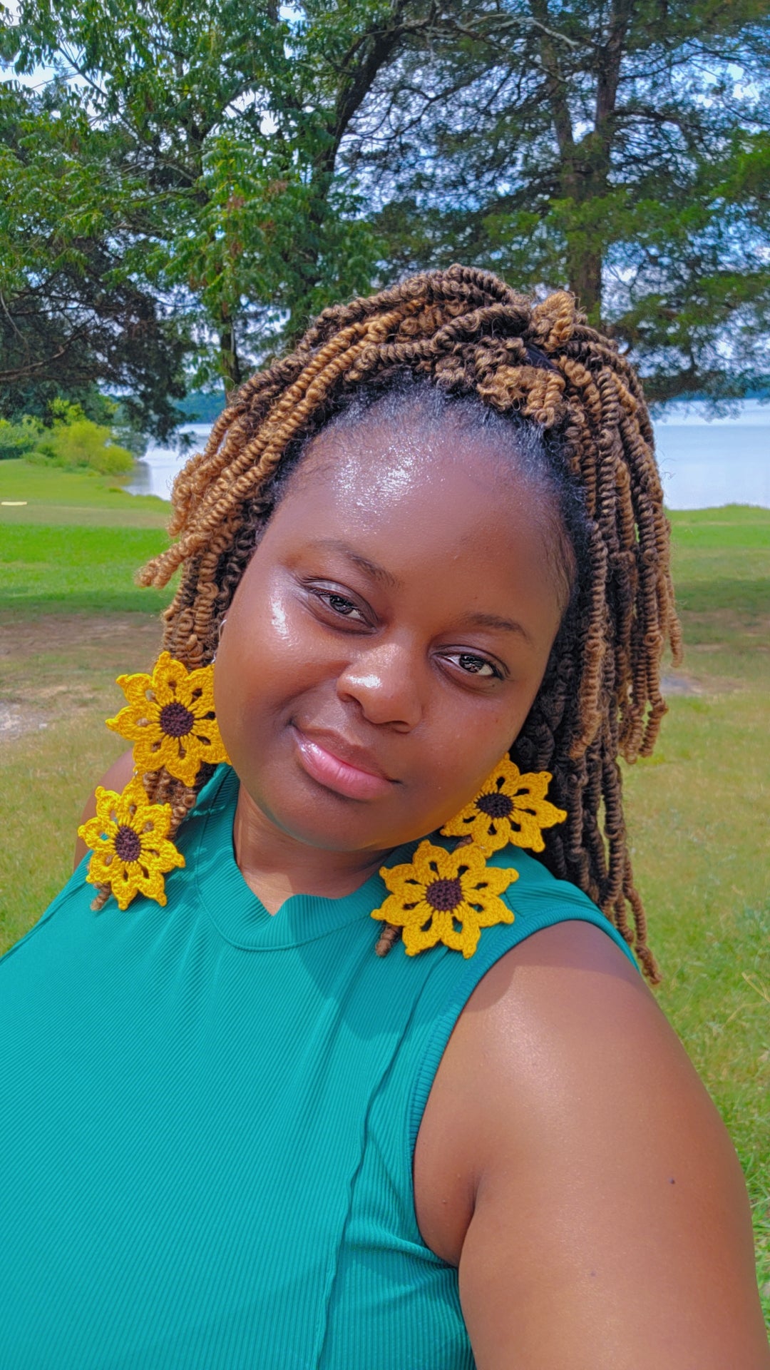 Brighten up your look with these bold and beautiful Double Sunflower Earrings! Hand-crocheted with love, each earring features two stacked sunflowers, radiating warmth, joy, and fierce feminine energy. Lightweight yet eye-catching, they’re the perfect statement piece for sunny days, festivals, or just bringing the sunshine with you wherever you go.